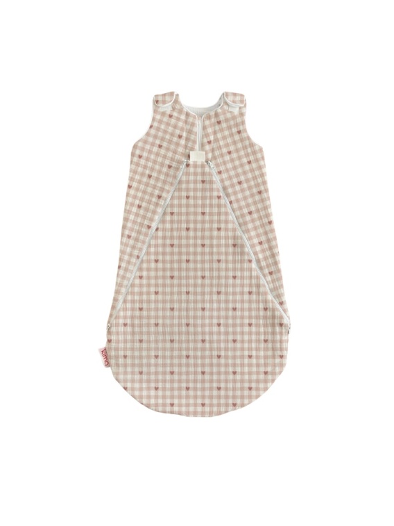 Śpiworek muślinowy 1 TOG sprawdzi się idealnie na wiosnę oraz lato. Zastosowaliśmy dwie warstwy muślinu bez dodatkowego wypełnienia pomiędzy nimi. Materiał jest miękki, delikatny i przewiewny. Pozostawiliśmy wypełnienie w elementach wpływających na komfort dziecka, m.in. na ramiączkach.